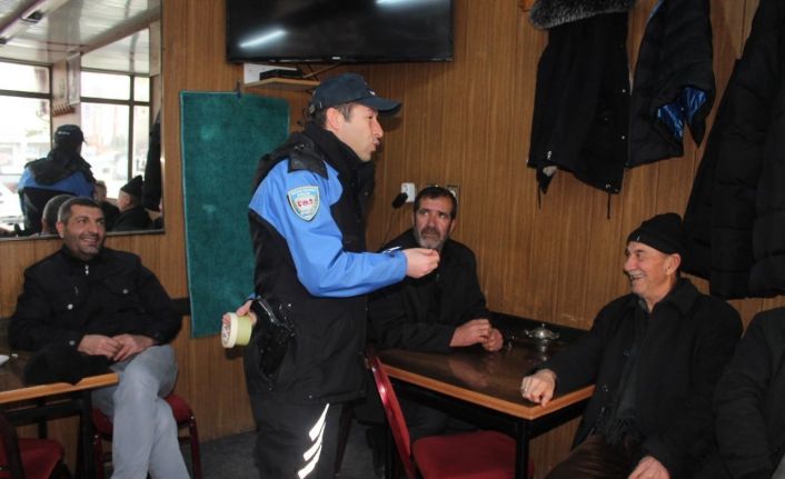Bununla birlikte bilgilendirme faaliyeti yürüten ekipler İçişleri Bakanlığı Emniyet Genel Müdürlüğünün ’dikkat yüklü miktarda para veya ziynetle tapu, noter, banka, döviz bürosu, kuyumcu vb. yerlerde yapacağınız işlemlerinizde’ başlıklı uyarıcı afişi kahvehanelerin görünen kısımlarına, duvarlara astılar.