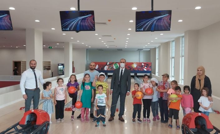 Çocuklarla yakından ilgilenen Rektör Türkmen, onlarla bir süre sohbet etti. Daha sonra çocukların bowling eğlencelerine eşlik etti.
