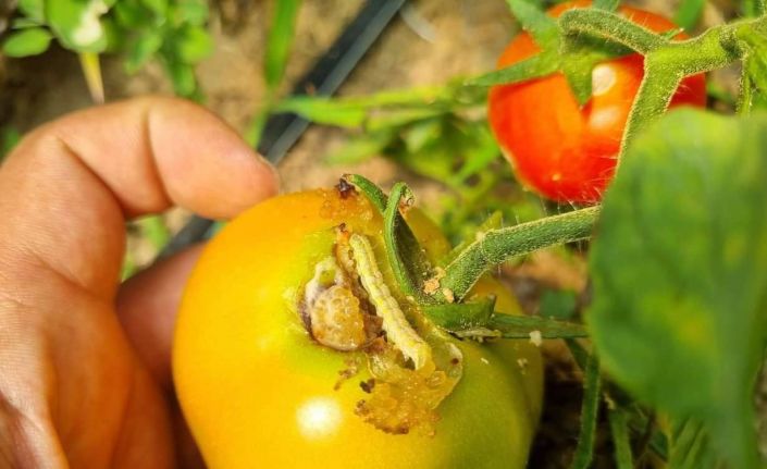 Bayburt İl Tarım ve Orman Müdürlüğü teknik personellerince örtü altı yetiştiricilik yapılan seralarda gerçekleştirilen kontrollerde, domates sebzesinde Yeşil Kurt zararlısı tespit edildi.