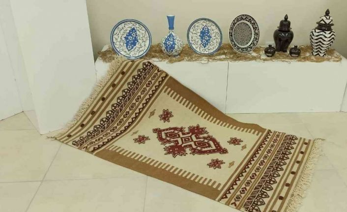 Bayburt Aydıntepe Halk Eğitimi Merkezinde açılan kurslarda dokunan “Soğanlı kabartma halıları” Bayburt halkı ve misafirlerin beğenisine sunuluyor.