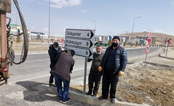 Bayburt’ta zamanla yıpranan ve hasar görmüş trafik ve köy bilgi tabelaları yenileniyor.