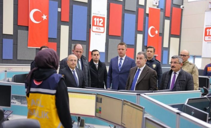 Bayburt Valisi Mustafa Eldivan, 112 Acil Çağrı Merkezi Müdürlüğü Komuta Merkezi’ni ziyaret ederek incelemede bulundu.