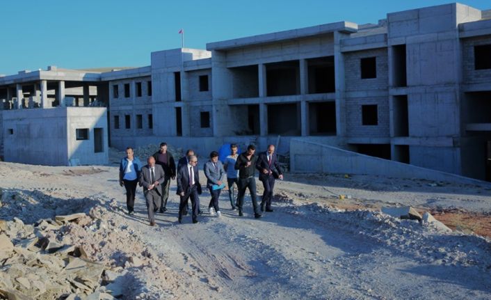 Bayburt Valisi Cüneyt Epcim göçmen geri gönderme merkezi inşaatında incelemelerde bulundu.