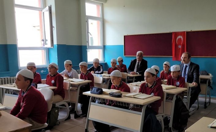 Bayburt Valisi Cüneyt Epcim, Erdem Bayazıt İmam Hatip Ortaokulu’nda hafızlık eğitimlerine devam eden 5/A ve 5/B sınıfı öğrencilerinin dersine katıldı. Öğrencilerin Kur’an-ı Kerim tilavetlerini dinleyen Vali Epcim, eğitim öğretim hayatlarına ilişkin tavsiyelerde bulundu.