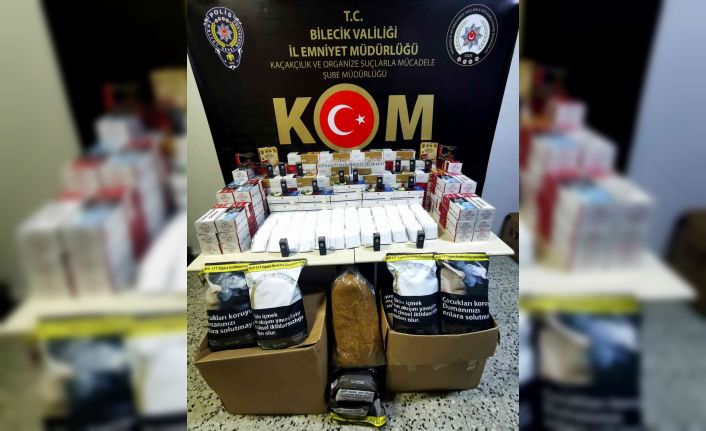 Alınan bilgiye göre, Bilecik İl Emniyet Müdürlüğüne bağlı KOM ekiplerince kaçak/bandrolsüz tütün ve tütün mamulü ticareti yapan şahısların tespitine yönelik Bozüyük ilçesinde yürütülen çalışmalar sonucu yapılan operasyonda 4 ayrı işyeri ve bağlantılı 5 araçta, 47 bin 260 adet dolu makaron, 34 bin 600 adet bandrolsüz boş makaron, 20 kilogram kaçak kıyılmış tütün, 25 kilogram bandrolsüz kıyılmış tütün, 33 adet elektronik sigara likiti, 8,5 kilogram kaçak nargile kömürü ele geçirildi.