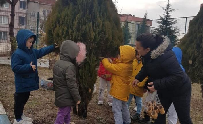 Anaokulu öğrencileri "Dostlarımız kışın aç kalmasın" adlı projeleri ile sokak hayvanlarının mama ve su ihtiyacını karşıladı.
