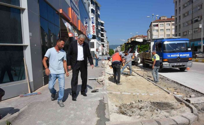 Bozüyük Belediye Başkanı Mehmet Talat Bakkalcıoğlu, İsmet İnönü Caddesi üzerinde devam eden kaldırım düzenleme çalışmalarına katılarak çalışanlara kolaylıklar diledi.
