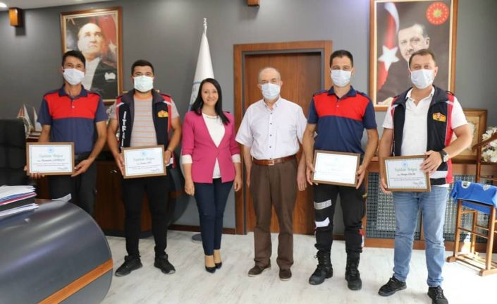 Öte yandan Başkan Tekin, orman yangınlarının söndürülmesi çalışmalarına destek veren itfaiye personellerimize teşekkür belgesi vererek ve çalışmalarında kolaylıklar diledi.
