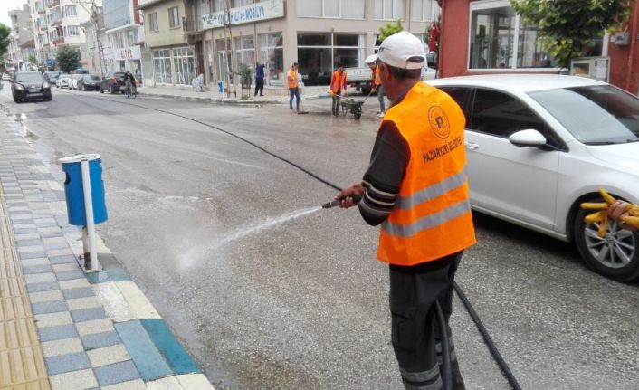 Bilecik’in Pazaryeri ilçesinde belediye ekiplerince cadde ve sokakları baştan aşağı yıkandı.