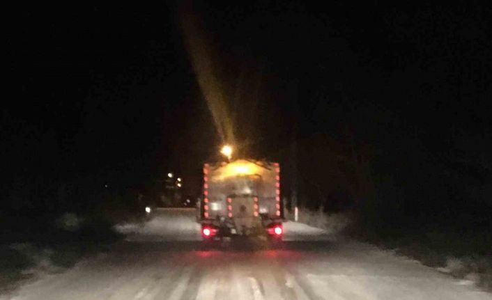 Meteoroloji İl Müdürlüğünden alınan bilgiler doğrultusunda ekip ve ekipmanlarıyla hazır halde bekleyen birim çalışanları, gece boyunca yüksek kesimlerdeki yollarda temizleme ve tuzlama çalışması yaptı.