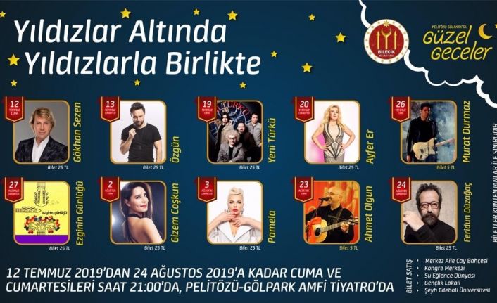 Bilecik Belediyesi tarafından Temmuz ve Ağustos aylarında gerçekleştirilecek ‘’Yıldızlar Altında Yıldızlarla Birlikte’’ adlı konserler kapsamında Bilecik halkı birbirinden değerli sanatçılarla buluşacak.