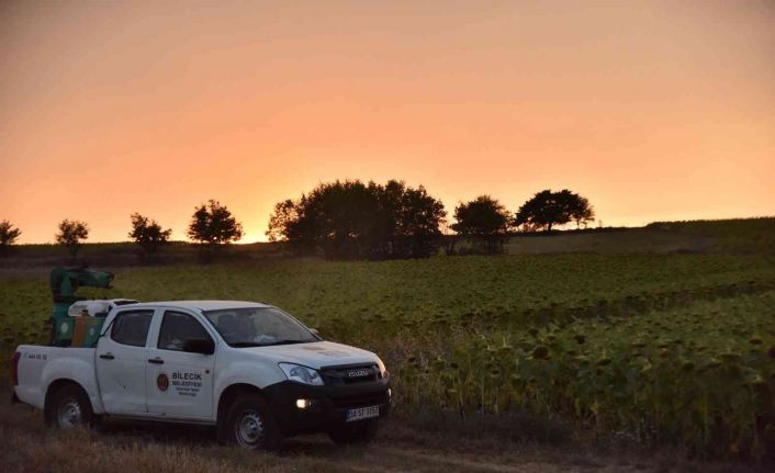 Bilecik Belediyesi tarafından il ve ilçelerdeki köylerde görülen ve ayçiçeği bitkisine büyük zararı olan çayır tırtılı ile mücadele çalışmaları devam ediyor.