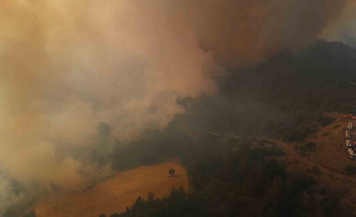 İlçenin Çiftlik köyü yakınlarında bulunan ormanlık alanda yoğun müdahale çalışmaları sürüyor. Havadan ve karadan mücadele eden ekipler, köylülerin de iş birliği ile geniş alandaki yangını kontrol altına almaya çalışıyor. Yangının köye inmemesi için ekipler çalışmalarını sürdürürken, aynı bölgede farklı alanlardaki diğer yangınlara da müdahaleler devam ediyor.