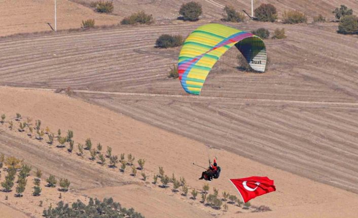 Cumhuriyet’in 101’inci yılını kutlamak, Gazi Mustafa Kemal Atatürk ve kahraman silah arkadaşlarını anmak için kanat açan yamaç paraşütçüleri, Meryem Dağı’nda yaptıkları uçuşta gökyüzünde Türk bayraklarını dalgalandırdılar. Uçuş öncesi sporculara teşekkür eden Bilecik Valisi Şefik Aygöl, onların bu anlamlı uçuşla Cumhuriyet’in değerlerini gökyüzüne taşıdıklarını belirtti.
