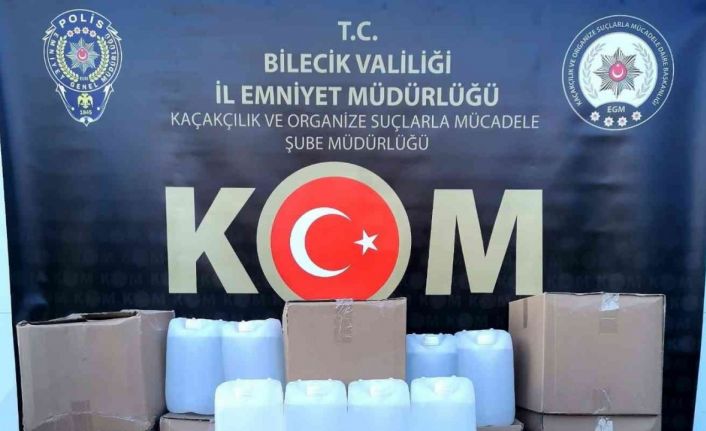 Bilecik’te sahte içki üreten, ticaretini yapan şahıslara yönelik operasyonda 120 bidon etik alkol ele geçirildi
