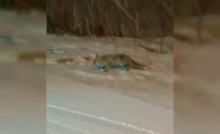Bilecik’te etkili olan kar yağışı sonrası dağlarda yiyecek bulamayan tilkiler yerleşim yerlerinde görüntülendi.
