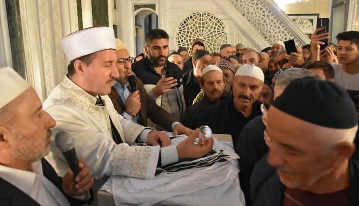 Müftü Ahmet Dilek tarafından 40 katlı bohçasından çıkarılan Sakal-ı Şerif vatandaşlara gösterildi. Ziyarette bazı vatandaşlar gözyaşlarını tutamadı.