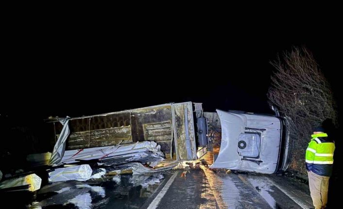 Bilecik’in Osmaneli ilçesinde direksiyon hakimiyetini kaybeden tır sürücüsü kaza yaptı.