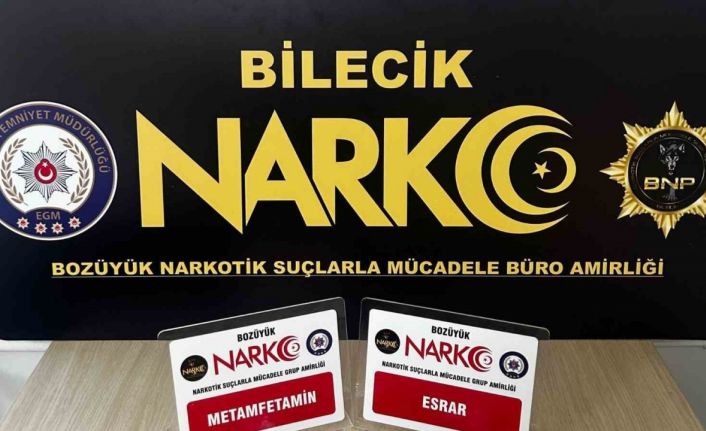 Bozüyük İlçe Emniyet Müdürlüğü’ne bağlı Narkotik Suçlarla Mücadele Büro Amirliği ekiplerince düzenlenen uyuşturucu operasyonunda yakalanan şüphelinin üzerinde; 0,69 gram esrar maddesi, 0,71 gram metamfetamin maddesi ele geçirildi.