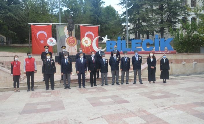 Bilecik’te 19 Eylül Gaziler Günü dolayısıyla sabah saat 10.00’da Cumhuriyet Meydanında düzenlenen törende Bilecik Valisi Bilal Şentürk, Belediye Başkanı Semih Şahin ile Bilecik Şehit Aileleri ve Gaziler Derneği Başkanı Hayati Durak, Atatürk Anıtı’na çelenk bıraktı. Saygı duruşunda bulunulması ve İstiklal Marşı’nın okunmasının ardından konuşma yapan Bilecik Şehit Aileleri ve Gaziler Derneği Başkanı Hayati Durak, "18 Mart’ta Çanakkale’de, Çanakkale geçilmez diye, 1 Nisan’da İnönü’de Türk’ün makus talihini değiştiren 20 Temmuz’da Kıbrıs’ta soydaşlarını Rum’un mezaliminden kurtaran 26 Ağustos ‘ta Afyon Kocatepe’den kasırga olup aydınlığa doğan 30 Ağustos’ta Kütahya Dumlupınar’da zafer olup ümitsizliği boğan, 9 Eylül de İzmir’in dağlarında çiçek olup sonsuzluğa yağan Mehmetçik. Bu vatanı kuran sonsuza dek var olsun diye varlığı toprak olan, toprağı değil koca bir tarihi dolduran, düşman kurşununa yüreğiyle meydan okuyan Mehmetçik. Karşılık beklemeden senin ve komutanlarının bu fedakârlıklara TBMM’de Mareşal Gazi Mustafa Kemal Atatürk’e gazilik unvanının verildiği gün olan 19 Eylül’ü Gaziler Günü kabul etmiştir. Bugün 19 Eylül Gaziler Günü bütün yurtta coşkuyla anılmaktadır" ifadelerini kullandı.