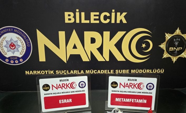 Edinilen bilgilere göre, Bilecik İl Emniyet Müdürlüğü Narkotik Suçlarla Mücadele Şube Müdürlüğü ekiplerince kent genelinde uyuşturucu ile mücadele kapsamında operasyon düzenlendi. Operasyonda muhtelif miktarda metamfetamin ve esrar ile 1 adet uyuşturucu madde kullanmaya yarayan cam aparat (bong) ele geçirildi. Uyuşturucu madde ticareti yapma veya sağlama ile kullanmak için uyuşturucu madde bulundurmak suçlarından 2 şüpheli şahıs yakalanarak gözaltına alındı.