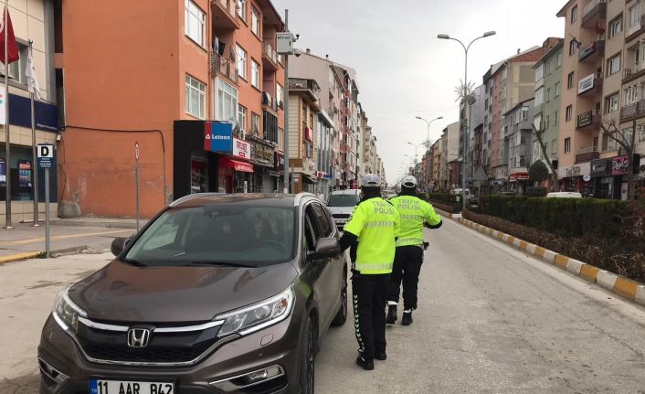 Bilecik’in Bozüyük ilçesinde İlçe Emniyet Müdürlüğü’ne bağlı Trafik Denetleme Şube Müdürlüğü ekipleri ana arterler, kavşak, cadde ve sokaklarda denetimlerine devam ediyor. Trafik ekipleri kavşaklarda kontrol noktalarında denetleme yaparken, yoldan geçen araçları durdurarak izin belgesi sorguşu yaptı. İzin belgeleri olmayan ya da mevzuata aykırı olanlar hakkında ise tutanak tutuldu. Durdurulan motosikletli kuryeler için de trafik yönünden inceleme yapılırken, çalışma belgeleri kontrol edildi. Ekipler marketlerin yoğun olduğu bölgelerde de önlemler alarak araçlar ile zaman zaman anonsları yaparak uyarılarda bulundu.Bilecik’te sokağa çıkma kısıtlamasında denetimler sıkı bir şekilde sürüyor