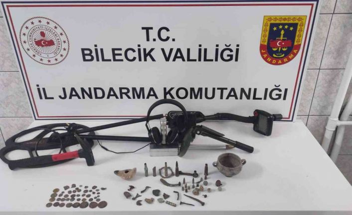 Alınan bilgiye göre, Bilecik İl Jandarma Komutanlığı ekiplerince Bozüyük İlçe Jandarma Komutanlığı sorumluluk bölgesinde tarihi eser kaçakçılığı yapıldığı ihbarına ulaşıldı. Ekipler, aldıkları istihbari bilgiler dahilinde şüphe duyulan araçta ve şüpheli şahısların evlerinde arama gerçekleştirdi. Yapılan arama sonucunda; 2 adet dedektör, 43 adet sikke, 17 adet muhtelif eski eser ele geçirtildi. Cumhuriyet Savcısının talimatıyla ele geçirilen malzemelere el konulurken, şüpheli E.P. ve Ö.P isimli şahıslar gözaltına alınarak haklarında yasal işlem başlatılmıştır.