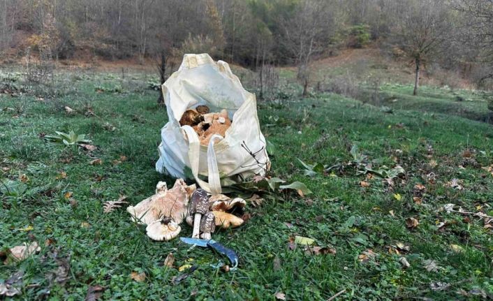 Havaların yağışlı gitmesi nedeniyle mantar bolluğu yaşanan Bilecik’te vatandaşlar çuval çuval kanlıca mantarı topladı.