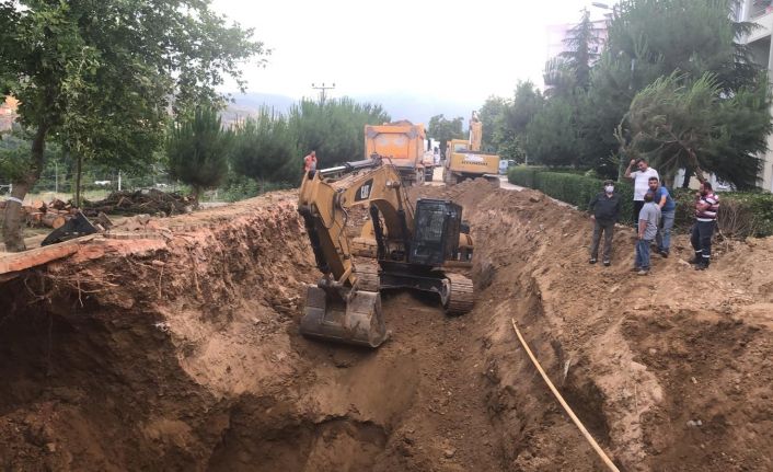 Konu hakkında Bilecik Belediyesinden yapılan açıklamada, “İlimizin ana su besleme hattı olan Karasu hattında su patlağı meydana geldi. Mevcut hat, Bozüyük üzerinden gelerek 700 milimetre (70cm) çapında çelik boruyla ilimize ulaşıyor ve şehrimize Osmangazi Mahallesi Toplu Konut mevkiinden giriyor. Hattın Bozüyük’ten depolarımıza kadarki yönetim ve işletmesi Karasu İçme ve Kullanma Suyu İşletme Birliği tarafından yapılmaktadır. Arıza, söz konusu hattın içerisinden geçerek depolarımıza gittiği güzergâhta, hızlı tren yolunu geçtikten sonra meydana gelmiş. 24 Haziran 2021 Perşembe günü saat 19.00’da yaya kaldırımı ve yol arasından yüzeye vurunca fark edilen arızaya ilk olarak ekiplerimiz müdahale etmiş ve suyun şebeke suyu patlağı değil Karasu patlağı olduğu anlaşıldı. İlk müdahaleyi belediyemiz iş makinalarıyla yapan ekiplerimiz, hâlen daha Karasu İçme ve Kullanma Suyu Birliği’ne ekip, ekipman ve arşiv verileriyle destek olmaya devam ediyor. Bilecik Belediyesi olarak mevcut çalışmayı hızlandırmak için Karasu İçme ve Kullanma Suyu Birliği’ne destek olmayı sürdürüyoruz. Mevcut durumda kazıyla yer tespiti ve tamiri için çalışmaya devam ediliyor. Mevcut hat yüksek basınçlı bir hattır. 2008 yılında yaşanan patlaktaki deneyimi de gözeterek, çalışmalar temkinli bir biçimde sürdürülüyor. Kazı bölgesinde kanalizasyon hatlarıyla herhangi bir temas olmamıştır. Kazı 10 metre derinliğe ve 15 metre kazı çapına ulaştı ve kesintisiz devam ediyor” denildi.