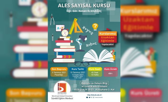 Üniversiteden yapılan açıklamada, "Genel İngilizce (ortaokul öğrencilerine yönelik), genel Almanca, genel Arapça ve ALES sayısal kursları için kayıtlar başladı. 6 ila 10 hafta arası sürecek olan kurslar için son başvuru tarihi 5 temmuz 2021 pazartesi günü. Açılacak olan kurslarla ilgili detaylı bilgiye //w3.bilecik.edu.tr/bilsem/ internet adresinden veya 0228-214-1420/23 numaralı telefondan ulaşılabilir" denildi.BİLSEM’den İngilizce, Almanca, Arapça ve ALES sayısal kursları