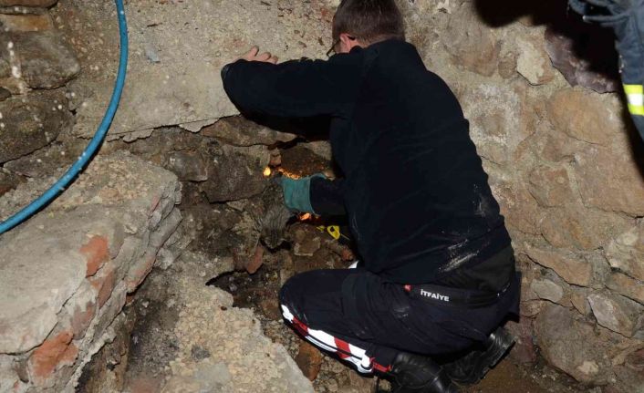 Bodruma sıkışan kediyi itfaiye kurtardı
