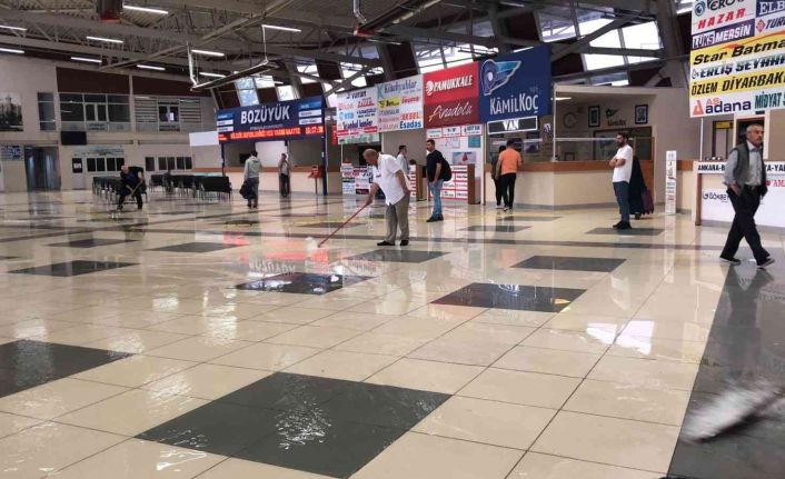 Şehirlerarası otobüs terminalinin zemini sular altında kalırken, terminalde çalışan vatandaşlar tarafından çekçekler ve fırçalar vasıtasıyla yağmur suyu tahliye edilmeye çalışıldı. Bu esnada otobüs terminalini kullanmak zorunda kalan vatandaşlar yaşananları şaşkın bakışlarla izledi.