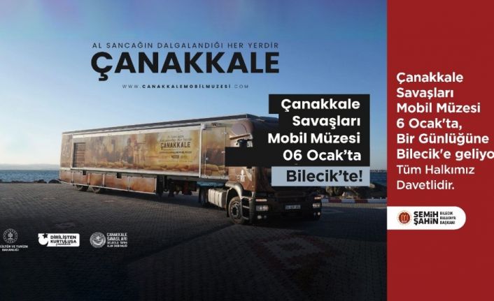 Bilecik Belediye Başkanı Semih Şahin, Çanakkale’de zaferinin, görüntülü olarak anlatıldığı ve savaş alanında yer alan objelerin sergilendiği Çanakkale Savaşları Mobil Müzesi, 6 Ocak’ta Bileciklilerle buluşacağını söyledi.