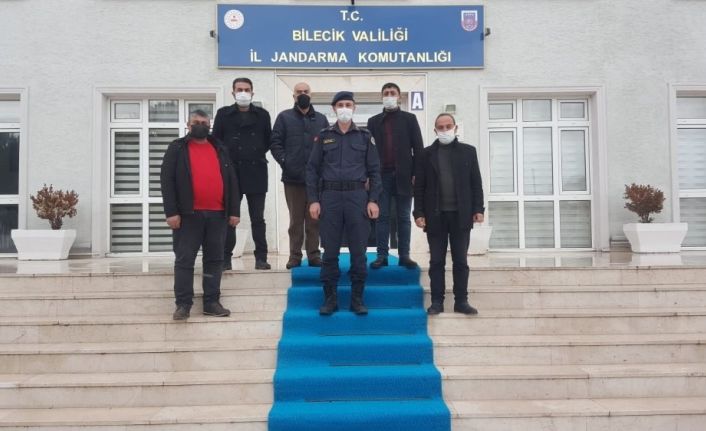 Bilecik Erzurumlular Derneği Başkanı Ebu Talip Dursun ve beraberindekiler, Merkez İlçe Jandarma Komutanı Teğmen Canip Akyüz’ü ziyaret ederek, yeni görevinde başarılar diledi. Erzurumlu olan Teğmen Akyüz ziyaretten duyduğu memnuniyeti dile getirerek, "Ertuğrul ocağında görev yapmayı Allah bize nasip etti. Allah’a şükür bu topraklarda görev yapmak bizim için onur ve şereftir" dedi.