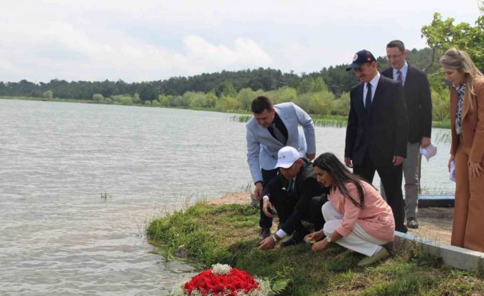 Bilecik’te depremden etkilenen vatandaşların anısına Pelitözü Göledine ’Saygı Çelengi’ bırakıldı.