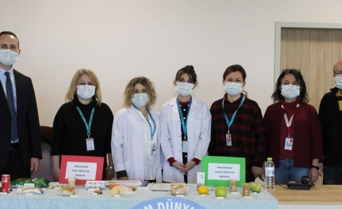 Poliklinik binası zemin katında diyabet hastalığına dikkat çekmek için açılan stantta, masaların üzerine kan şekerini hızlı ve yavaş yükselten besinler koyularak diyabet konusunda hasta ve hasta yakınlarında farkındalık oluşturulmaya çalışıldı. Bilecik İl Sağlık Müdürü Ferhat Damkacı, diyabet hastalığını tanımlayan bir açıklamada bulunarak, “Diyabet, vücudumuzda pankreas adlı salgı bezinin yeterli miktarda insülin hormonu üretmemesi ya da ürettiği insülin hormonunun etkili bir şekilde kullanılmaması durumunda gelişen bir hastalıktır. Kan şekeri düzeylerinin dengeli bir şekilde seyredilememesiyle netice verir. Diyabet hastalığı, bireylerde normalden fazla yemek yeme ve doymama hissi, sık idrara çıkma, ağızda kuruluk, tatlılık hissi ve buna bağlı olarak aşırı su içme isteği olarak belirtiler gösterebilir. Diyabet hastalığı olan bireylerin doktorun uygun gördüğü tıbbi tedavi ve diyetisyen kontrolünde bir beslenme programı ile tedavilerini sürdürmeleri gerekmektedir” ifadelerine yer verdi.