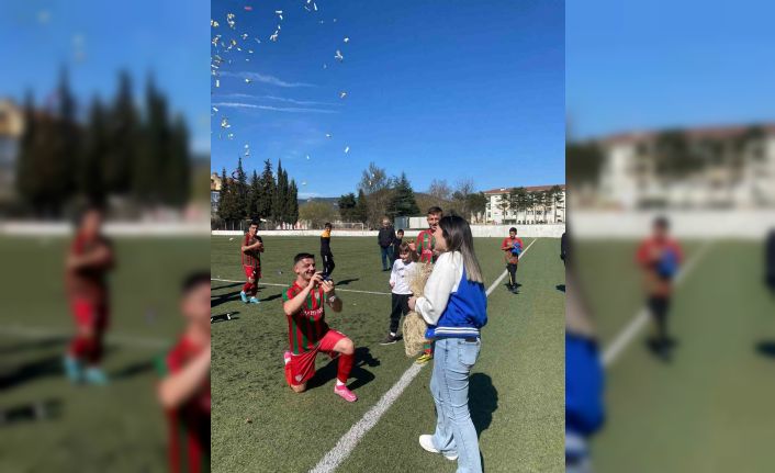 1308 Osmaneli Belediye Spor A Takımı oyuncusu Muhammet Bal kız arkadaşına sahada evlilik teklifi etti.