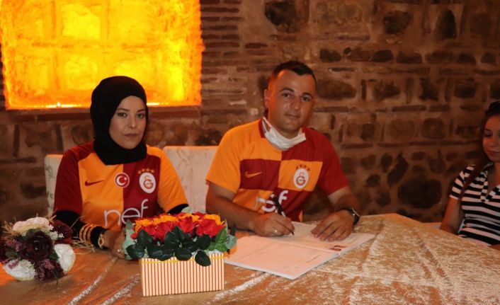 Bilecik’te dünya evine giren fanatik Galatasaray taraftarı Sevda ve Ramazan Ünver çifti, nikahlarına takımın formaları ile geldiler.