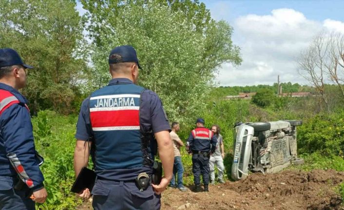 Bilecik’te devrilen hafif ticari araç içindeki köy ekmekleri yol kenarına saçıldı.