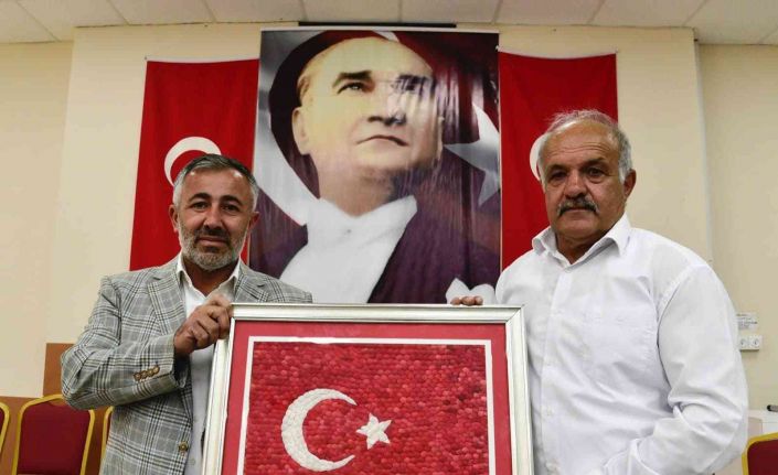 Başkan Yıldırım, şehidin babasına Türk Bayrağı işlemeli tabloyu hediye ederek şehide Allah’tan rahmet ailesine sabır diledi.