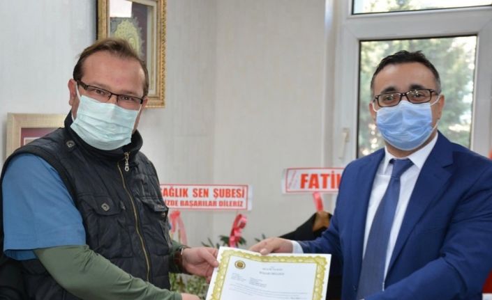 İzmir’de yaşanan deprem felaketi sonrası kurtarma çalışmalarına katılarak ilçeye dönen UMKE ekibinden Muharrem Çapuk, Hastane Başhekimi İlhan Zencirci tarafından başarı belgesi ile ödüllendirildi. Başhekim Zencirci, “Hastanemiz personellerinden Muharrem Çapuk’a 30.10.2020 tarihinde İzmir depreminde zarar gören vatandaşlarımızın yaralarının sarılmasında gösterdiği gayretli çalışmalarından dolayı başarı belgesi takdim ediyor, kendisine teşekkür ediyoruz” dedi.İzmir’de kurtarma çalışmalarına katılan personele başarı belgesi verildi