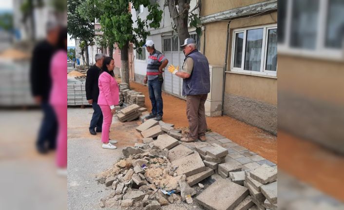 Pazaryeri Belediye Başkanı Zekiye Tekin, ilçede elektrik hatlarının yer altına alınması sürecinde meydana gelen yol ve kaldırım deformasyonlarının tamirat çalışmalarını yerinde inceledi.