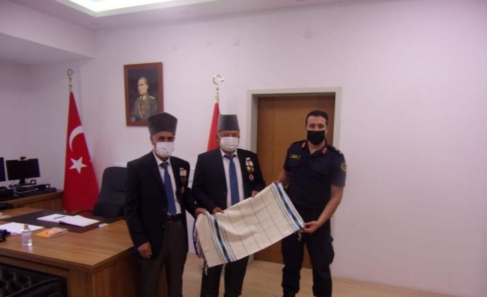 Gaziler, Komutan Ersoy’a el dokuması havlu hediye ettiler.