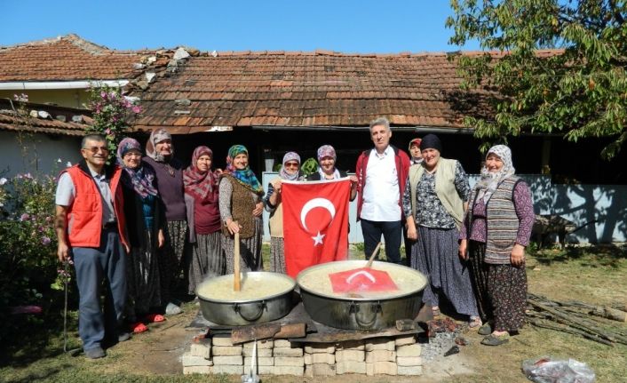Kınık Köyündeki aşure ikramında kadınlara köy halkı, köy muhtarı ve Kınıkspor Yönetim Kurulu üyeleri de katkıda bulundu.