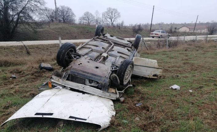 Kontrolden çıkan araç takla atıp tarım arazisine devrildi