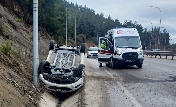 Bilecik’te seyir halinde virajı alamayan otomobil takla atarak, su kanalına devrildi. Kazada baba ve oğlu yaralandı.