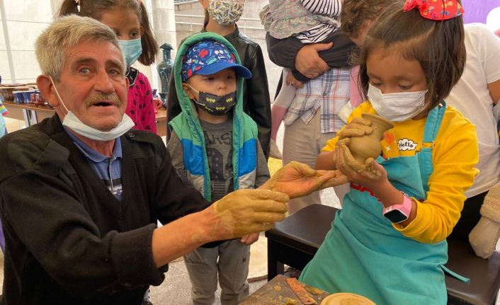 Geçtiğimiz hafta Yaşayan Şehir Müzesinde tişört boyama etkinliğine katılan ve zumba yapan çocuklar, bu hafta çömlekçi ustasından çömlek yapımını öğrenerek, çamura dokunma fırsatı buldu. Yaptıkları çömleklerle fotoğraf çektiren çocuklar daha sonra müzik eşliğinde dans gösterileri yaptı.