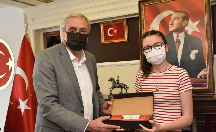 Başkan Bakkalcıoğlu’nu makamında ziyaret eden Mehmet Akif Ersoy Ortaokulu öğrencileri Sena Kurtulmuş ve Zehra Kale, Başkan Bakkalcıoğlu ile bir süre görüşerek sohbet etti. LGS’de dereceye giren öğrencilere başarılar dileyen Başkan Bakkalcıoğlu, "Başarılarınız ile bizleri gururlandırdınız. Sizi yürekten tebrik ediyor, başarılarınızın devamını diliyorum” dedi.