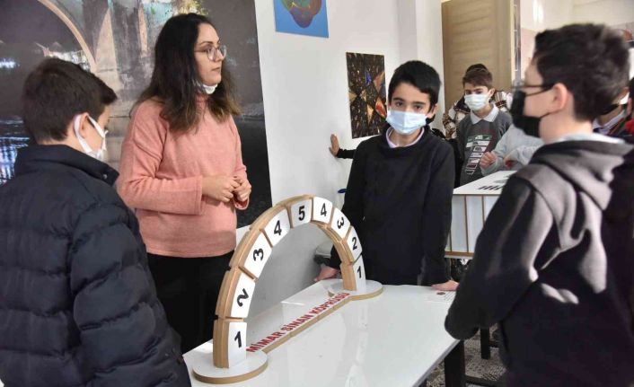 Bilecik’te "Matematiğe Dokunmayan Kalmasın" projesi ile bugüne kadar 9 farklı okuldan toplam 2 bin 100 çocuk Bilecik Belediyesi Bien Bilgi Evi Matematik Müzesini ziyaret etti. Ortaokul öğrencileri, saat 09.00-15.15 saatleri arasında günde 3 seans şeklinde belediye ait araçları ile müzeye geliyorlar. Salgınla mücadele tedbirleri gereği öğrenciler 20’şerli gruplar halinde müzeye alınıyor. Öğrenciler, eğitmen Sevgi Akkoy’un anlatımıyla matematiğin farklı boyutlarını öğrenen çocuklar, materyallere de dokunarak matematiği üç boyutlu bir şekilde öğreniyor.