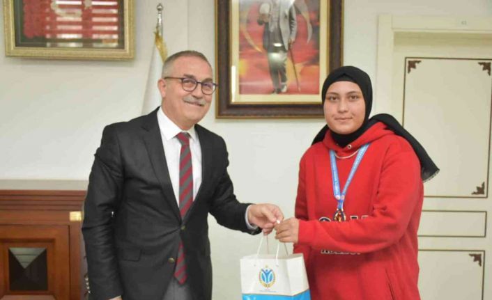 Bilecik İl Milli Eğitim Müdürü Mustafa Sami Akyol, Balkan Şampiyonu olan Nisanur Bırni’yi makamına kabul etti.